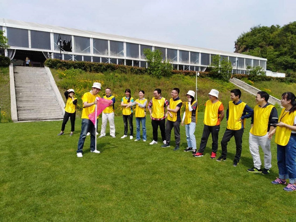 兩個(gè)半小時(shí)的車程后,我們抵達(dá)了山清水秀的千島湖。天公作美,此時(shí)陰雨散去,已是陽(yáng)光明媚,溫度宜人。飽餐一頓之后,我們便驅(qū)車前往第一個(gè)活動(dòng)地點(diǎn)——千島湖馬術(shù)公園拓展基地,開始了我們的團(tuán)隊(duì)建設(shè)活動(dòng)。首先,我們分成兩隊(duì)進(jìn)行了團(tuán)隊(duì)建設(shè),每隊(duì)選出了一名隊(duì)長(zhǎng),設(shè)計(jì)確定了隊(duì)名、隊(duì)徽、口號(hào),并一起制作了各自的隊(duì)旗,最后進(jìn)行團(tuán)隊(duì)展示。通過這項(xiàng)熱身,團(tuán)隊(duì)成員開始相互熟悉,氛圍也很快變得活躍了起來。隨后,我們開始了第一項(xiàng)活動(dòng)——數(shù)字游戲。在40分鐘內(nèi),我們要破解出30張卡片上的數(shù)字提示,并在一分鐘內(nèi)派一個(gè)人將30張卡片按順序交給裁判,每隊(duì)有3次機(jī)會(huì)。在游戲中,大家積極動(dòng)腦,為團(tuán)隊(duì)榮譽(yù)獻(xiàn)計(jì)獻(xiàn)策,最終一隊(duì)順利完成了任務(wù),而另一隊(duì)離成功也只差一點(diǎn)點(diǎn),游戲過程中充分展示了團(tuán)隊(duì)成員間的默契與合作能力,大家也都從中學(xué)到了團(tuán)隊(duì)配合的重要性。