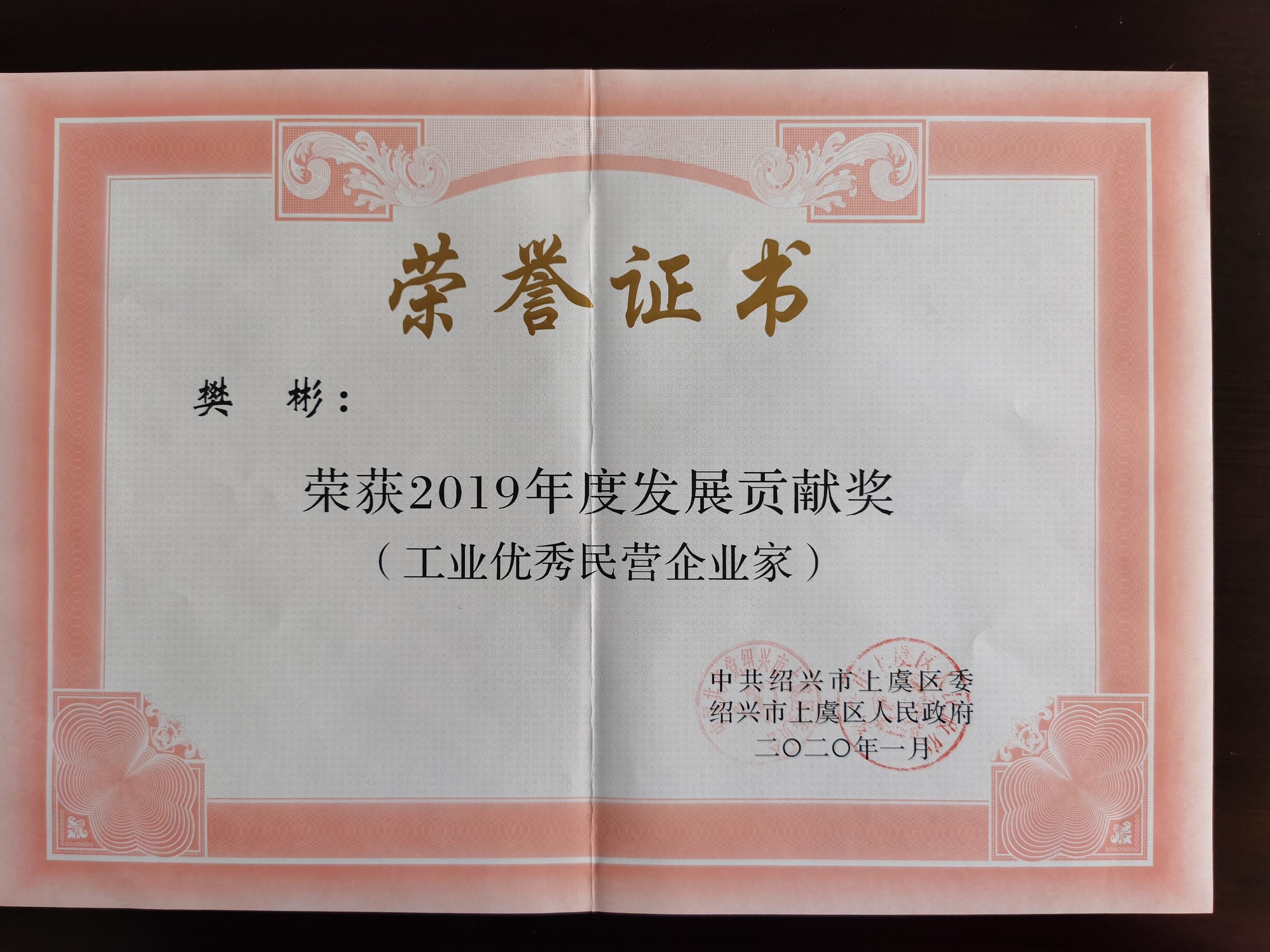 隨后,項(xiàng)政委為樊彬董事長頒發(fā)了上虞區(qū)2019年度發(fā)展貢獻(xiàn)獎(jiǎng)。 此項(xiàng)殊榮即是上虞區(qū)政府對(duì)董事長樊彬個(gè)人努力的褒獎(jiǎng),也是對(duì)揚(yáng)帆新材一年來為上虞經(jīng)濟(jì)發(fā)展所做貢獻(xiàn)的充分肯定。在過去的2019年,揚(yáng)帆新材在董事長樊彬的帶領(lǐng)下,腳踏實(shí)地、突破創(chuàng)新,緊跟時(shí)代的腳步,以現(xiàn)代化的經(jīng)營管理理念為指導(dǎo),實(shí)現(xiàn)了企業(yè)經(jīng)濟(jì)效益的穩(wěn)步提升。
