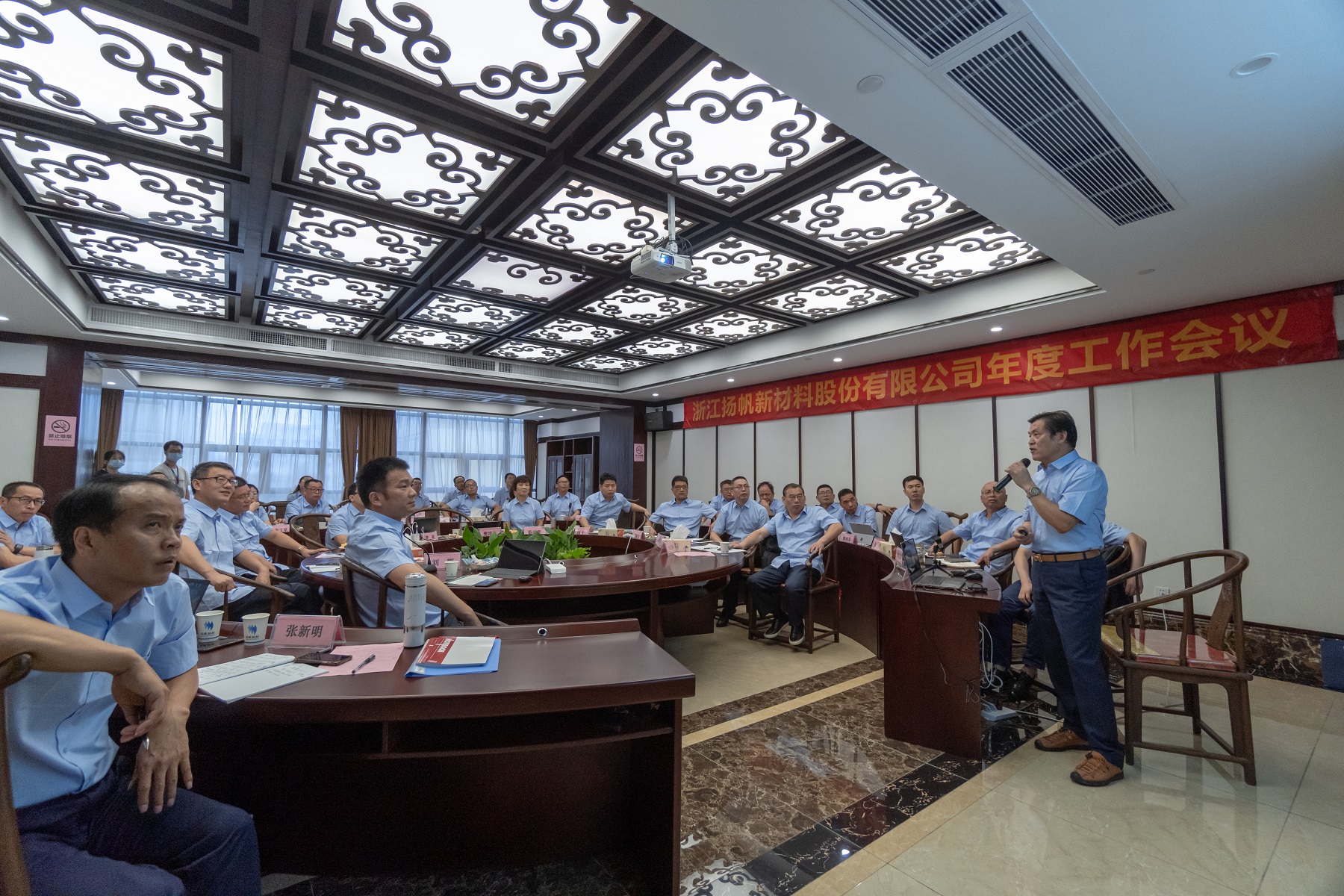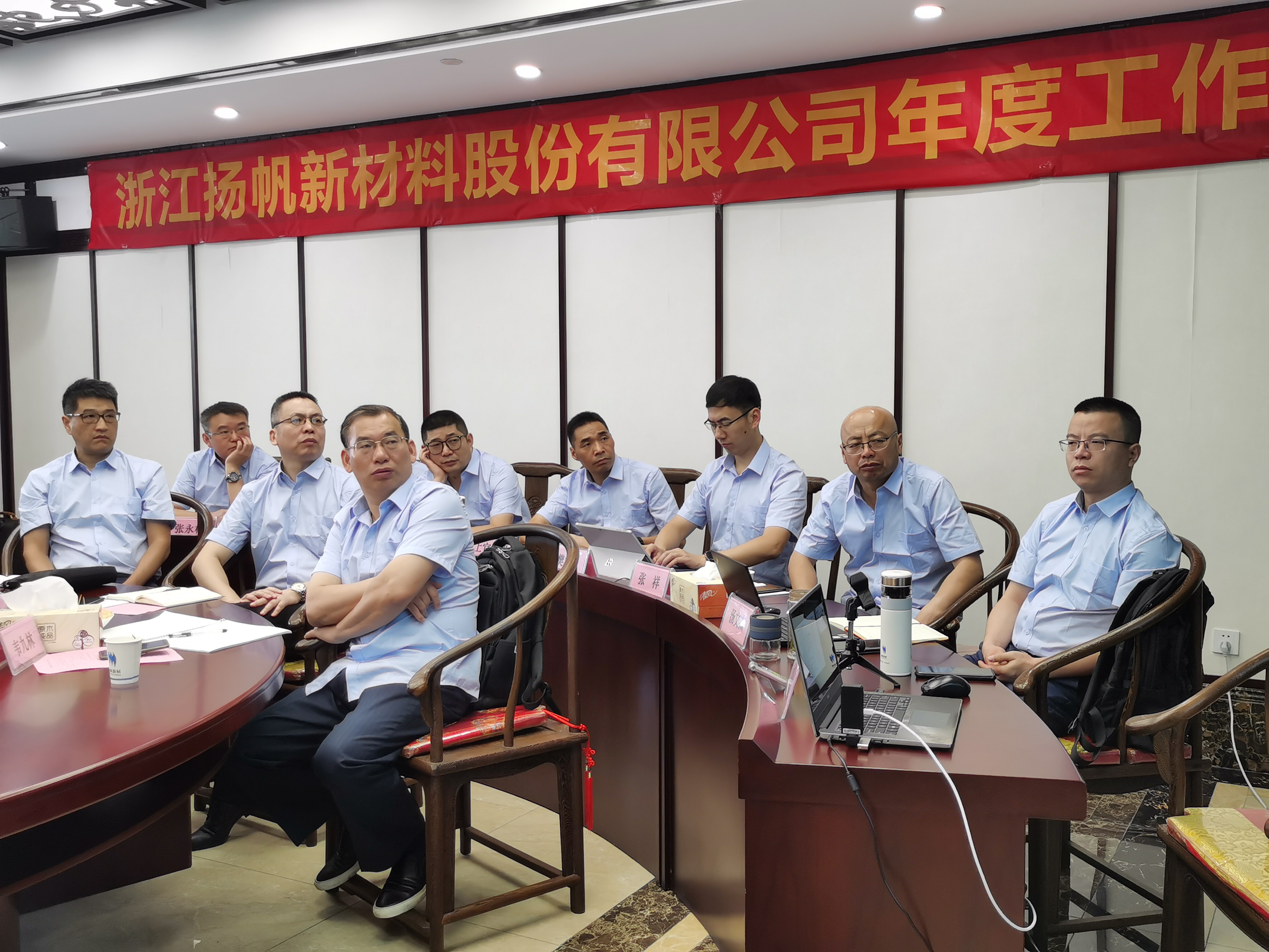 2020年7月25日,揚帆新材2020年中高管工作會議在杭州召開,公司控股股東浙江揚帆控股集團有限公司董事長樊培仁,揚帆新材董事長樊彬、總裁李耀土等股份及各子公司高管參加了此次會議,公司技術顧問、財務顧問等悉數出席了會議。