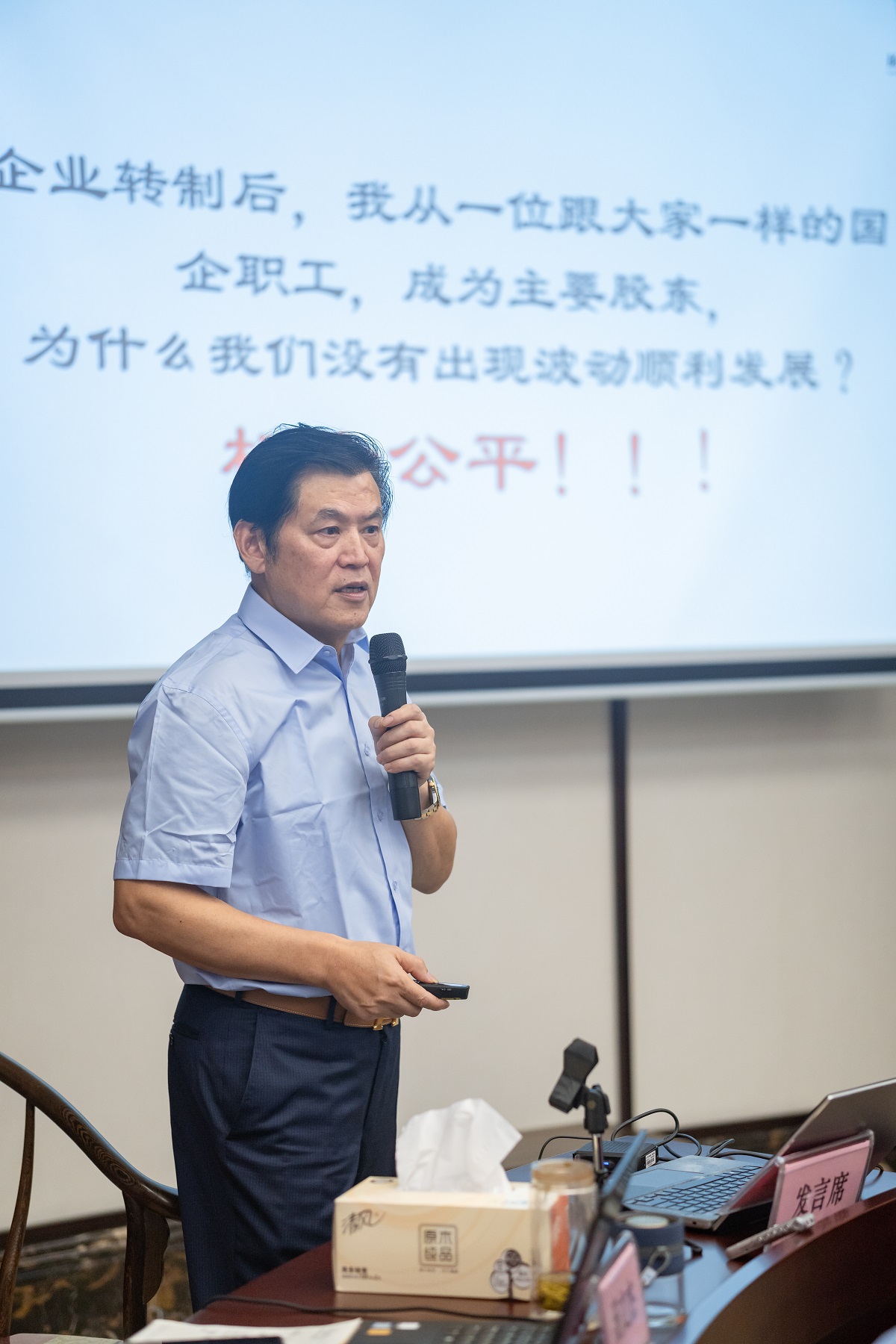 公司總裁李耀土正在做報告