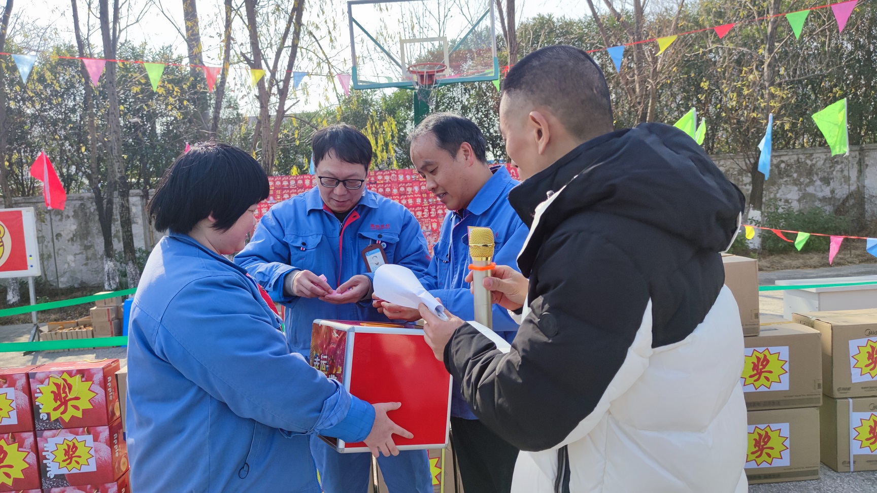 紅包墻是今天籃球場(chǎng)上最耀眼的道具,400個(gè)虎年卡通紅包組成的紅包墻,金光閃閃、虎虎生威,看著就充滿喜悅。此次紅包兌換確保人人有份,紅包兌換不限時(shí)間,隨到隨兌,未知的幸運(yùn)讓每一個(gè)紅包都承載了不一樣地快樂,如同抽盲盒一般,時(shí)不時(shí)地聽到歡呼,那是誰又中了大獎(jiǎng)啦。