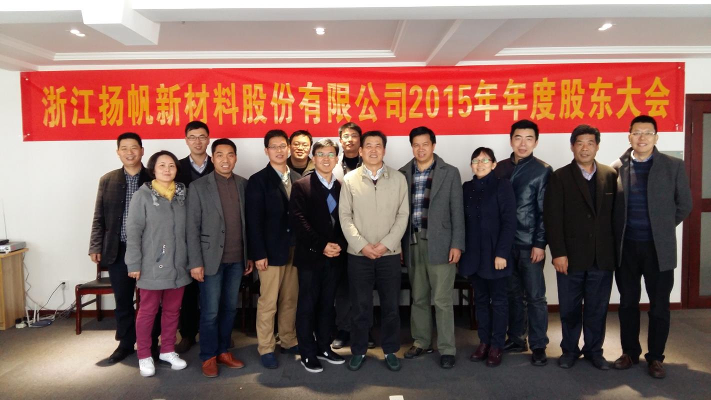 根據會議議程,參會股東和委托代理人審議了揚帆新材2015年度財務審計報告、獨立董事述職報告、董事會和監事會等各項議案,并對各項議案進行了表決。全部議程完畢后,本次股東大會圓滿結束。